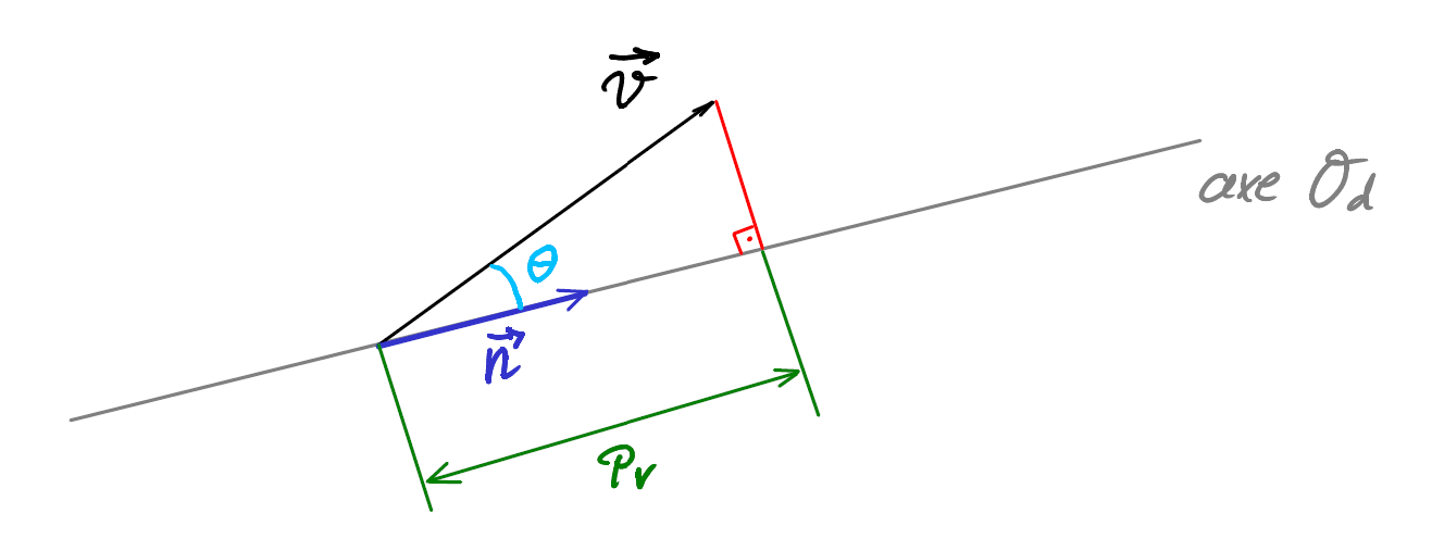 Ce résultat se généralise dans un espace à \(n\) dimensions avec un repère orthonormé :