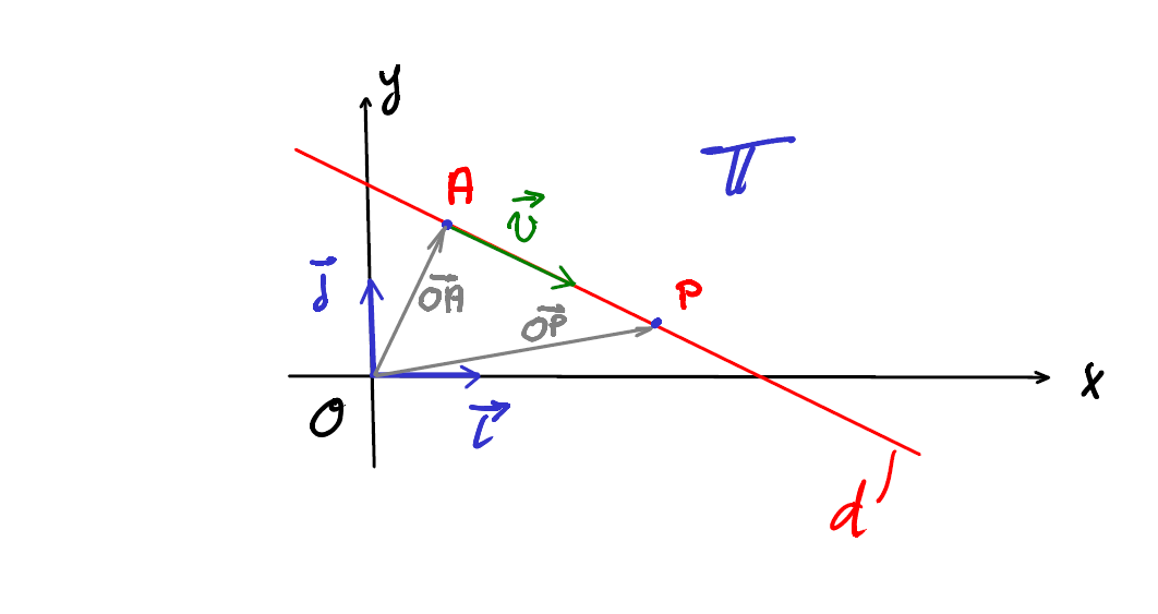 \[ \pi : \quad \boxed{ \quad \overrightarrow{OP}= \overrightarrow{OA} + \lambda \vec{u} +\mu \vec{v} \quad} \]