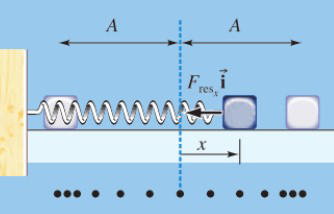 Soit un système composé composé d’un ressort de constante \(k\) et d’un bloc de masse \(m\) glissant sans frottement. Le système est disposé tel que montré sur la figure ci-dessous :