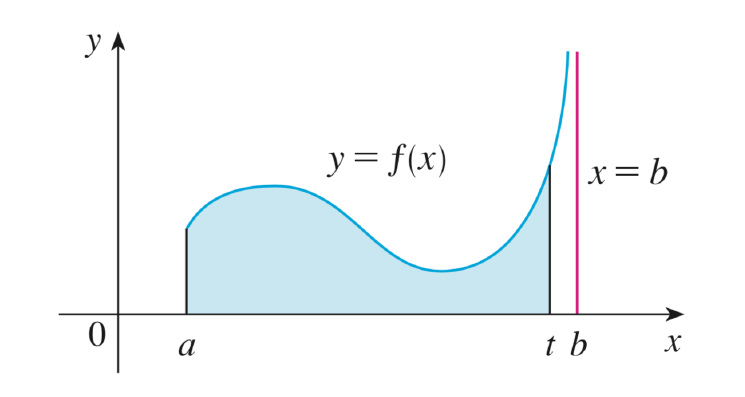 \[ \int _a^b f(x)dx = \lim _{t\rightarrow b^-} \int _a^t f(x) dx \]