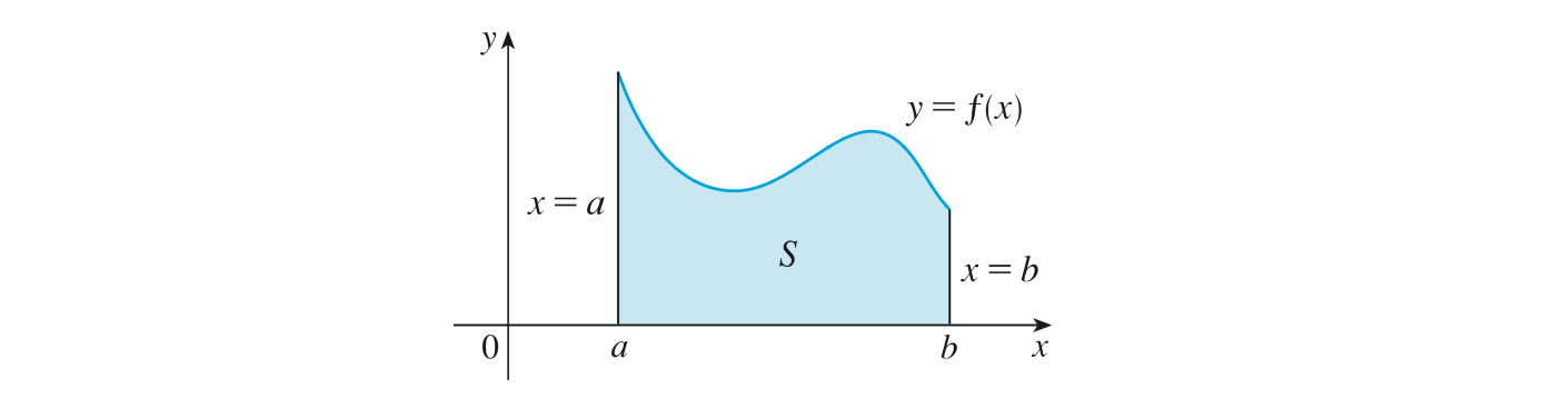 \[ S = \left\{\left( x,y\right) \in \mathbb{R} ^2 \vert \space a \leq x \leq b, \space 0\leq y \leq f(x) \right\} \]