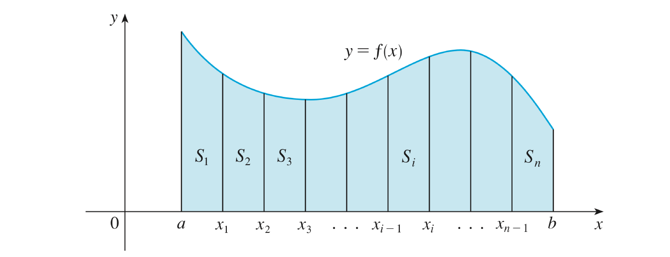 On décompose la surface \(S\) en \(n\) sous-intervalles de même largeur :