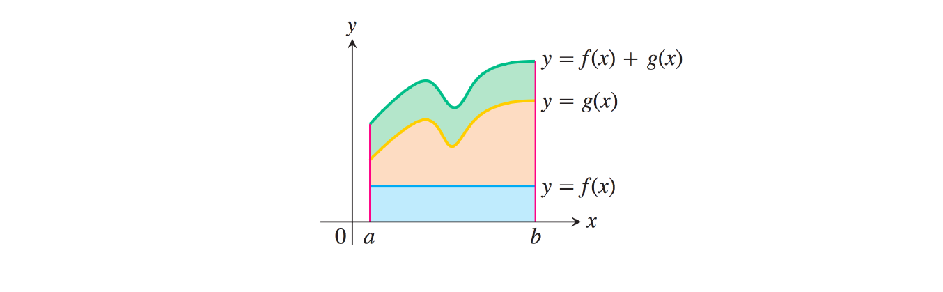 \[ \int _a^c f(x)dx = \int _a^b f(x)dx + \int _b ^c f(x) dx \]
