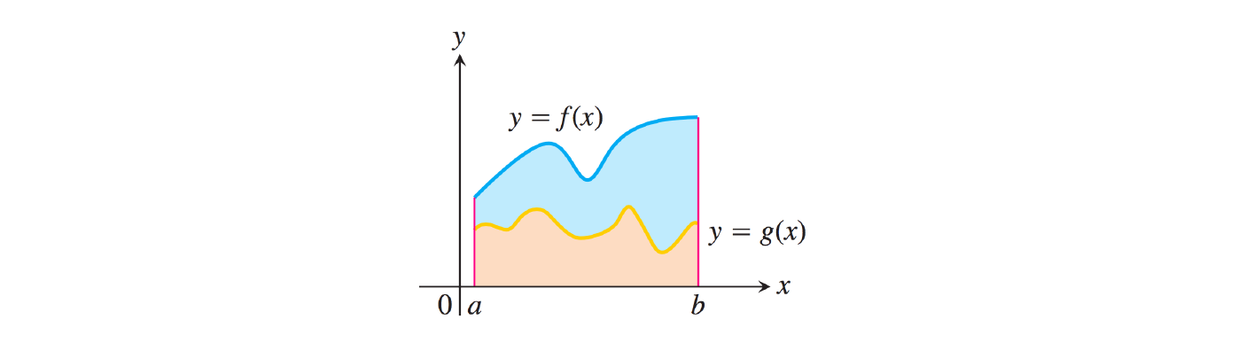 Soient \(f,g:[a,b] \longmapsto \mathbb{R}\) deux fonction continues par morceaux telles que \(f(x) \geq g(x) \quad \forall x \in [a,b]\). Alors :
